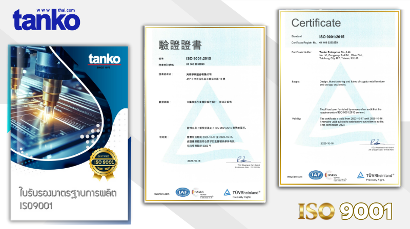 ตัวอย่างใบรับรองมาตรฐาน ISO9001 แบรนด์ TANKO