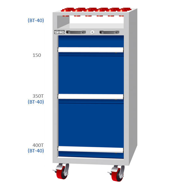 ประเภทการใช้งาน : ตู้เก็บหัวจับทูลติดล้อ CNC แบบมีลิ้นชักจัดเก็บ สำหรับเก็บหัวจับทูล BT-40