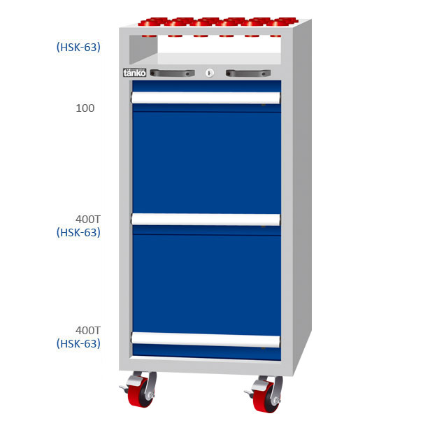 ประเภทการใช้งาน : ตู้เก็บหัวจับทูลติดล้อ CNC แบบมีลิ้นชัก สำหรับเก็บหัวจับทูล HSK63