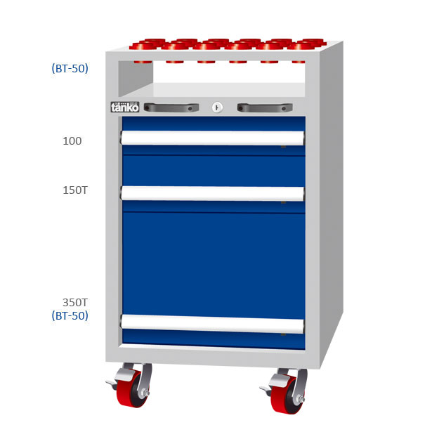 ประเภทการใช้งาน : ตู้เก็บหัวจับทูลติดล้อ CNC แบบมีลิ้นชัก สำหรับเก็บหัวจับทูล BT-50