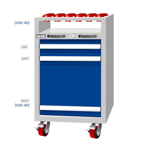 ประเภทการใช้งาน : ตู้เก็บหัวจับทูลติดล้อ CNC แบบมีลิ้นชัก สำหรับเก็บหัวจับทูล HSK-40