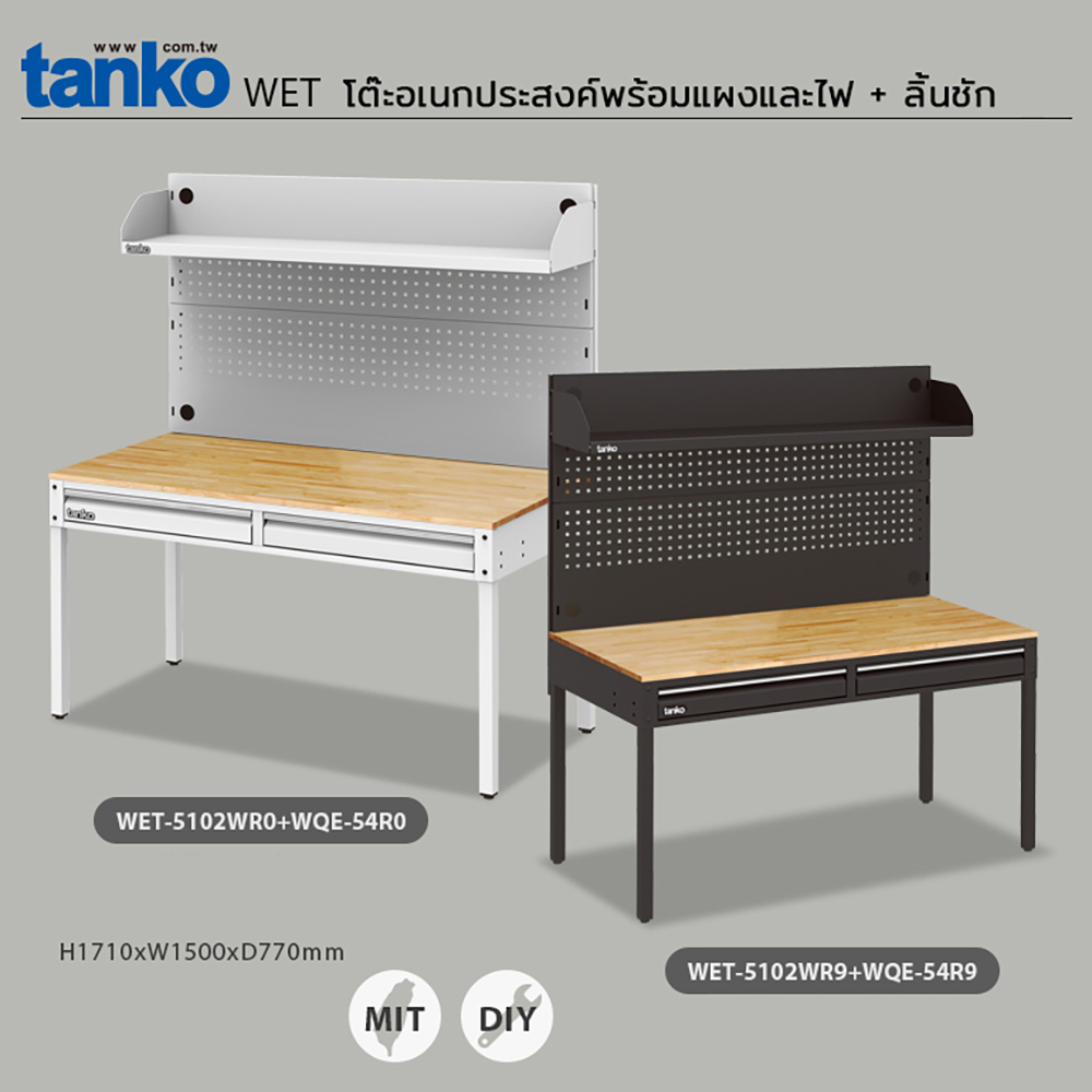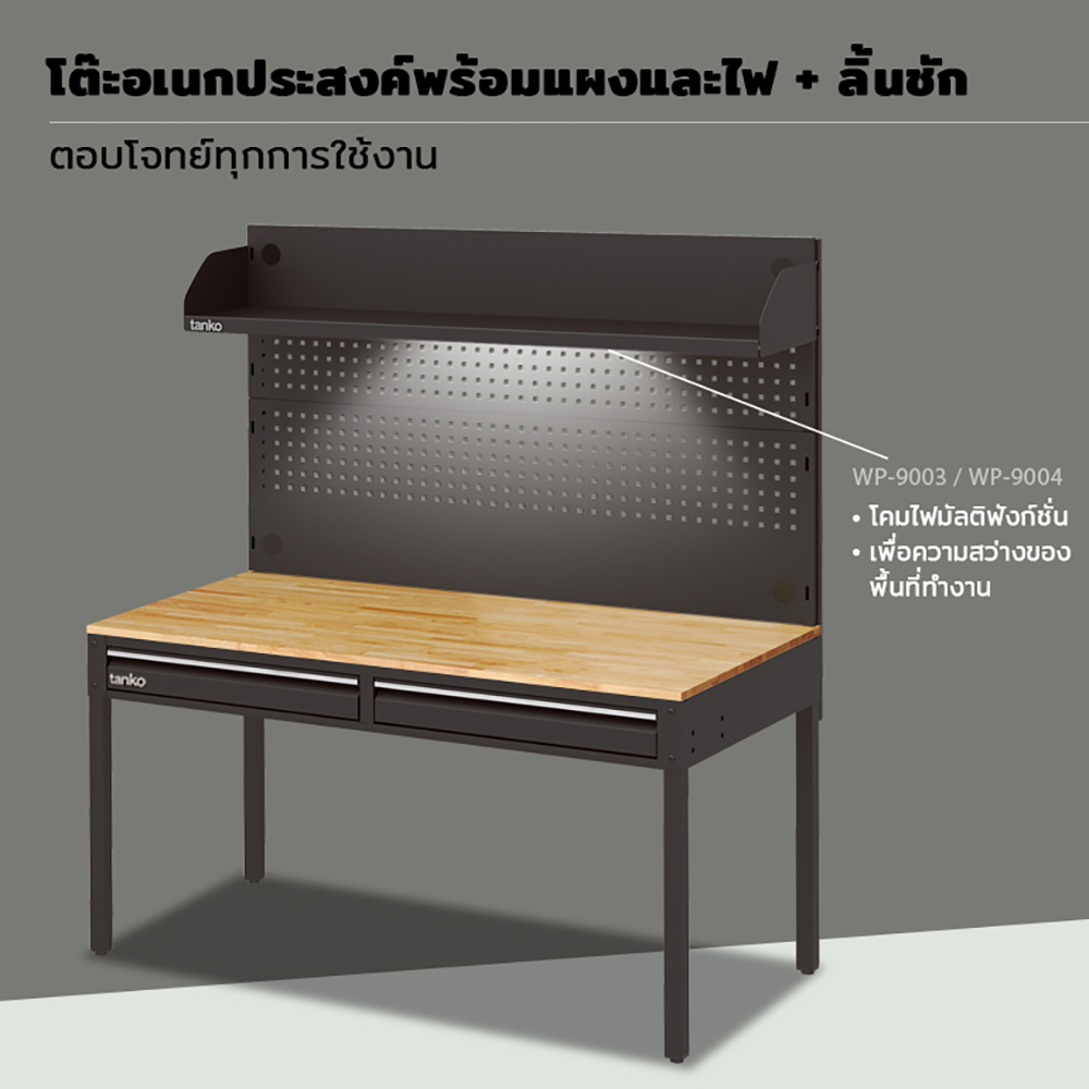 Name : โต๊ะอเนกประสงค์ TANKO หน้าท็อปไม้ WET-5102W5+ลิ้นชัก+แผง+ชั้นวาง+หลอดไฟ สีดำ