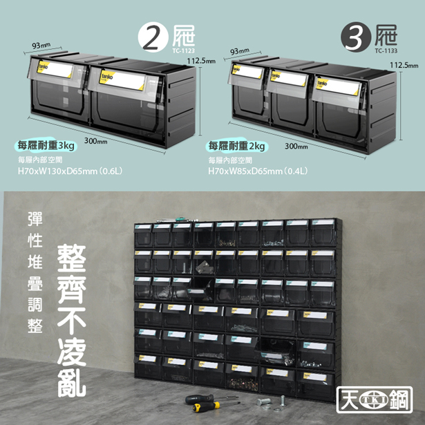 TC-112 | H112.5xW300xD93 mm two 0.6L PC bins / 3kg |