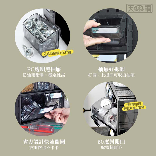 ลิ้นชัก : ทำจากวัสดุ PC สีดำใส ซึ่งแข็งและเหนียว และเรียกว่าโลหะใส
