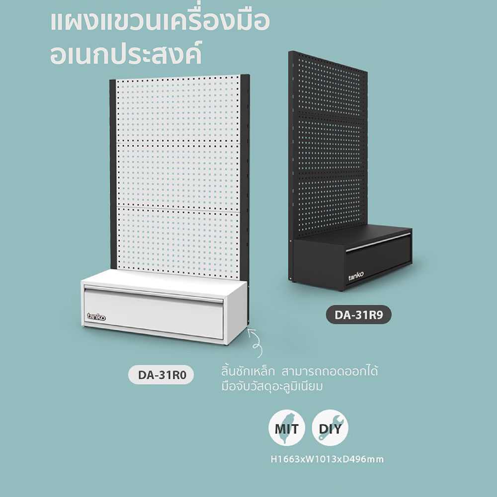 Name : แผงแขวนเครื่องมือตั้งพื้น + 1 ลิ้นชัก TANKO รุ่น DA-31R0 สีขาว