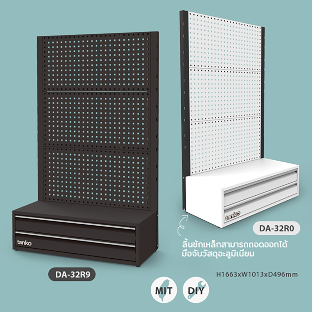 Name : แผงแขวนเครื่องมือตั้งพื้น + 2 ลิ้นชัก TANKO รุ่น DA-32R9 สีดำ