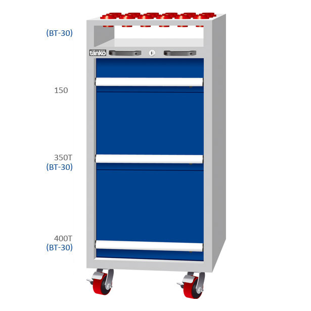 ประเภทการใช้งาน : ตู้เก็บหัวจับทูลติดล้อ CNC แบบมีลิ้นชักจัดเก็บ สำหรับเก็บหัวจับทูล BT-30