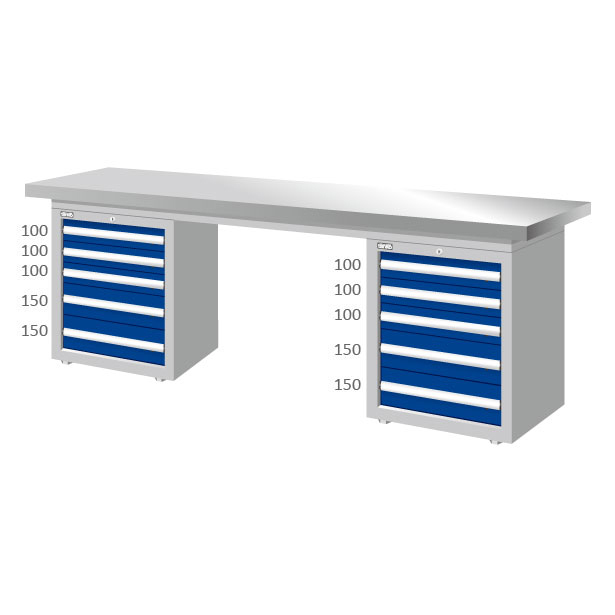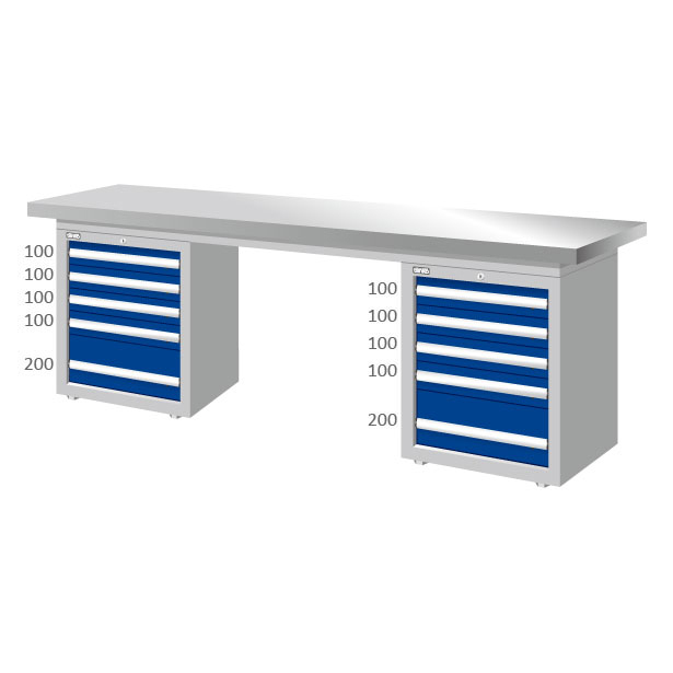 WAD-77042Sโต๊ะช่าง + 2 ตู้เครื่องมือ TANKO Heavy Duty รุ่น WAD-77042S หน้าท๊อปสแตนเลส